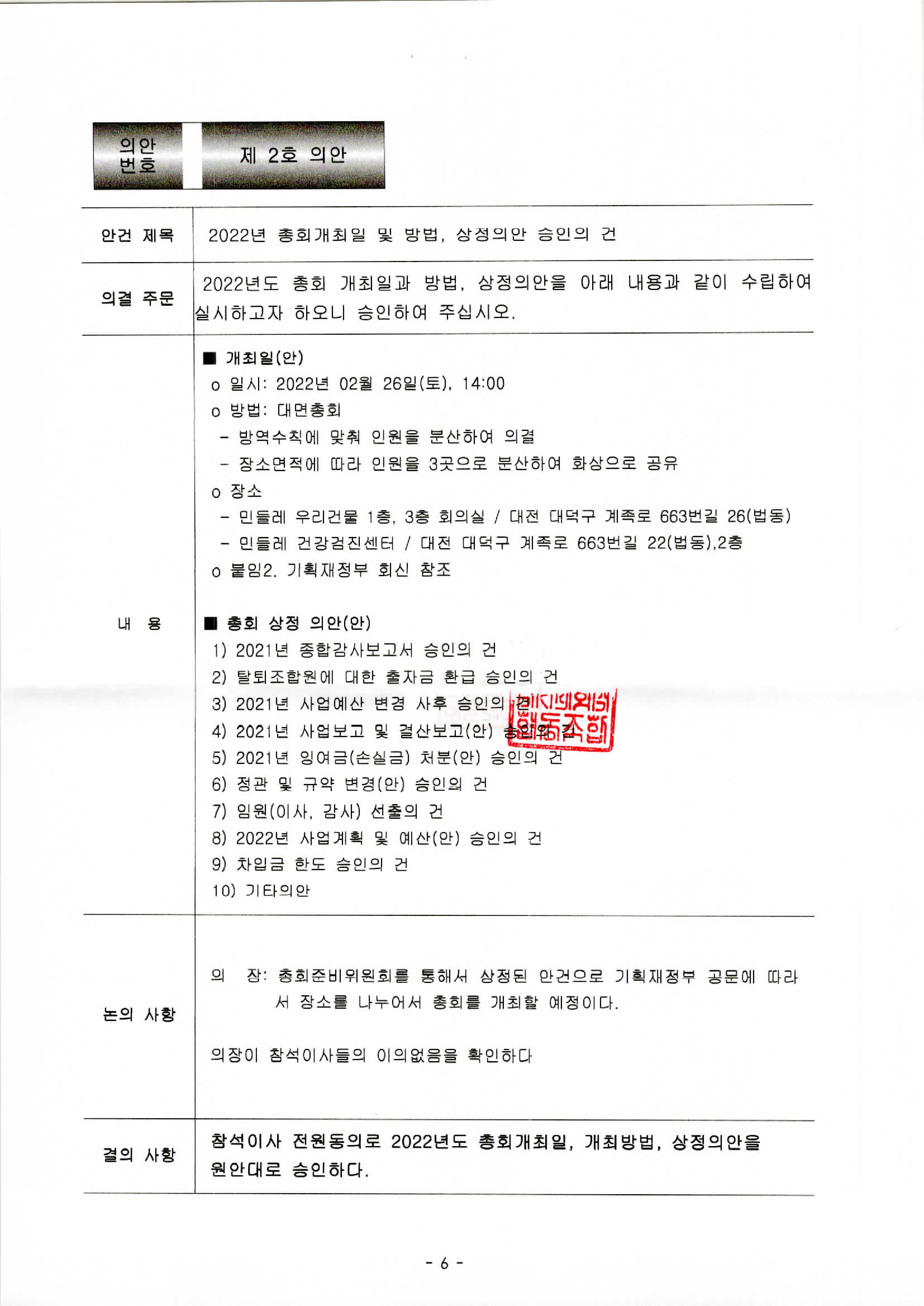 [2022-02] 정기이사회 결과보고