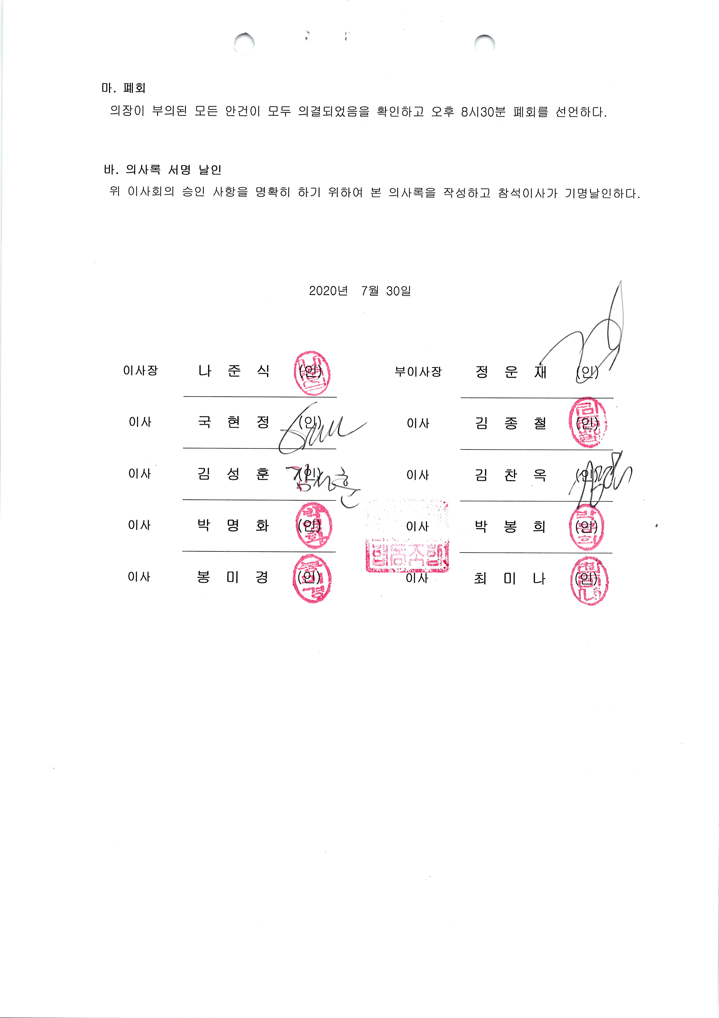 [2020-07] 정기이사회 결과보고