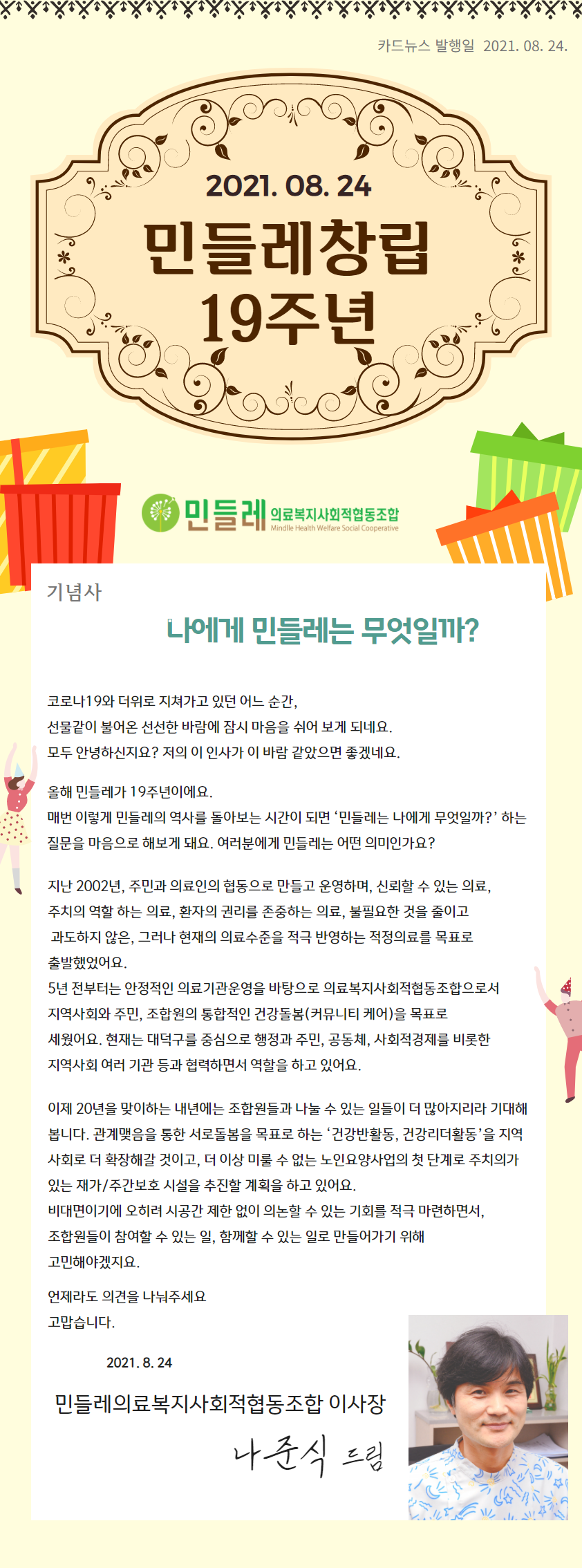 민들레의료복지사회적협동조합이 벌써 19살이 되었습니다.