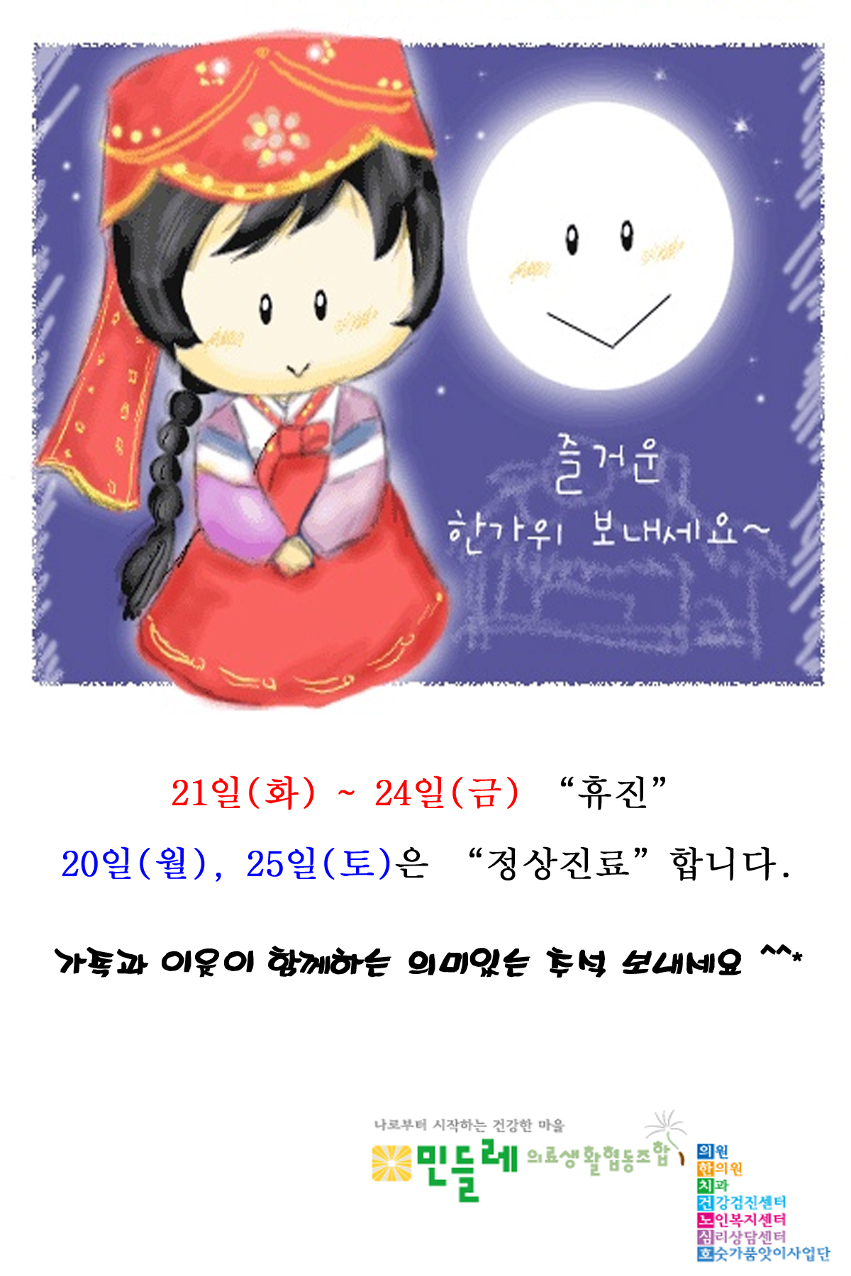 추석연휴 민들레의료기관 이용안내