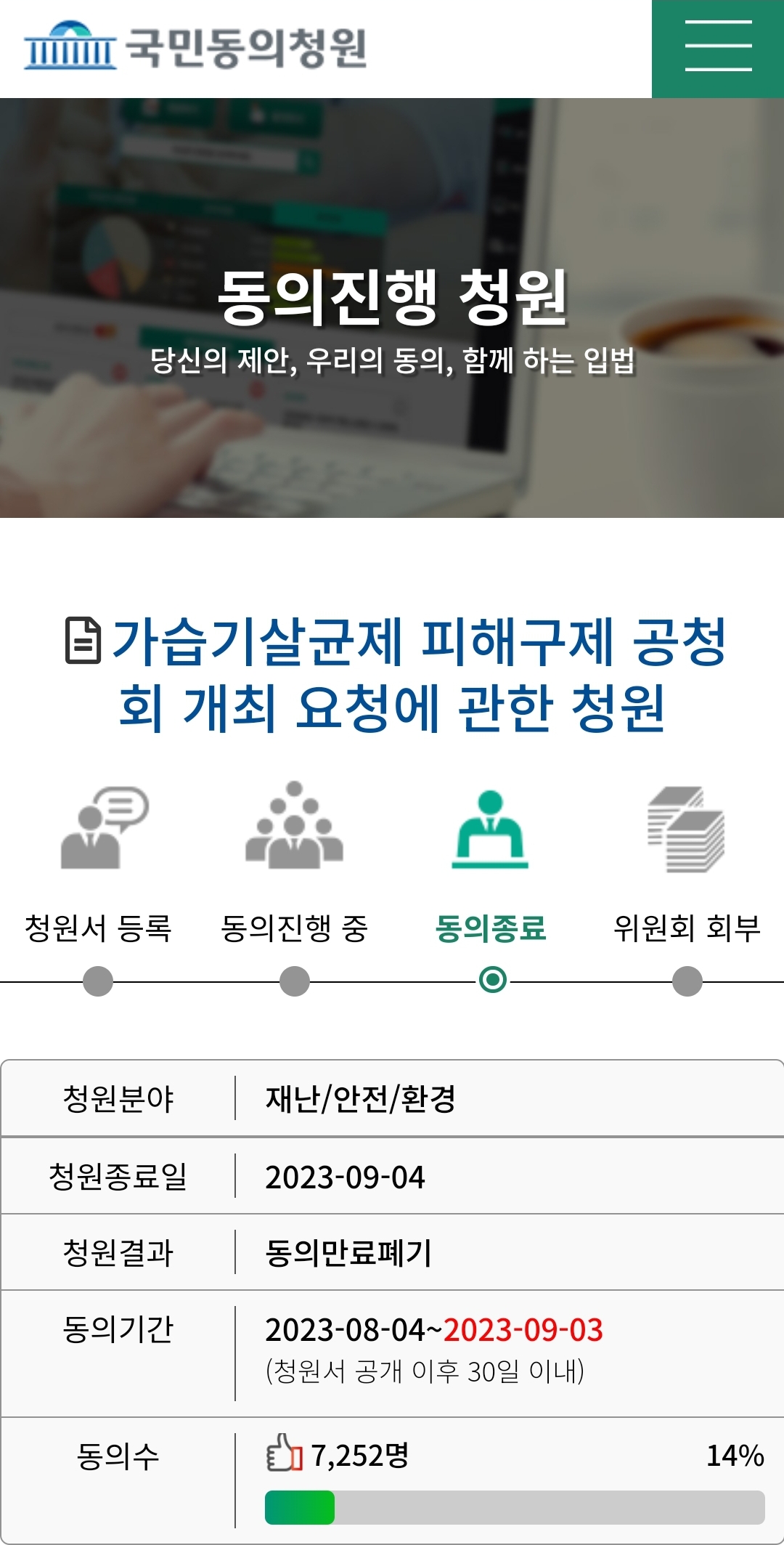 가습기살균제 피해구제 공청회 개최 요청에 관한 청원 (결과)