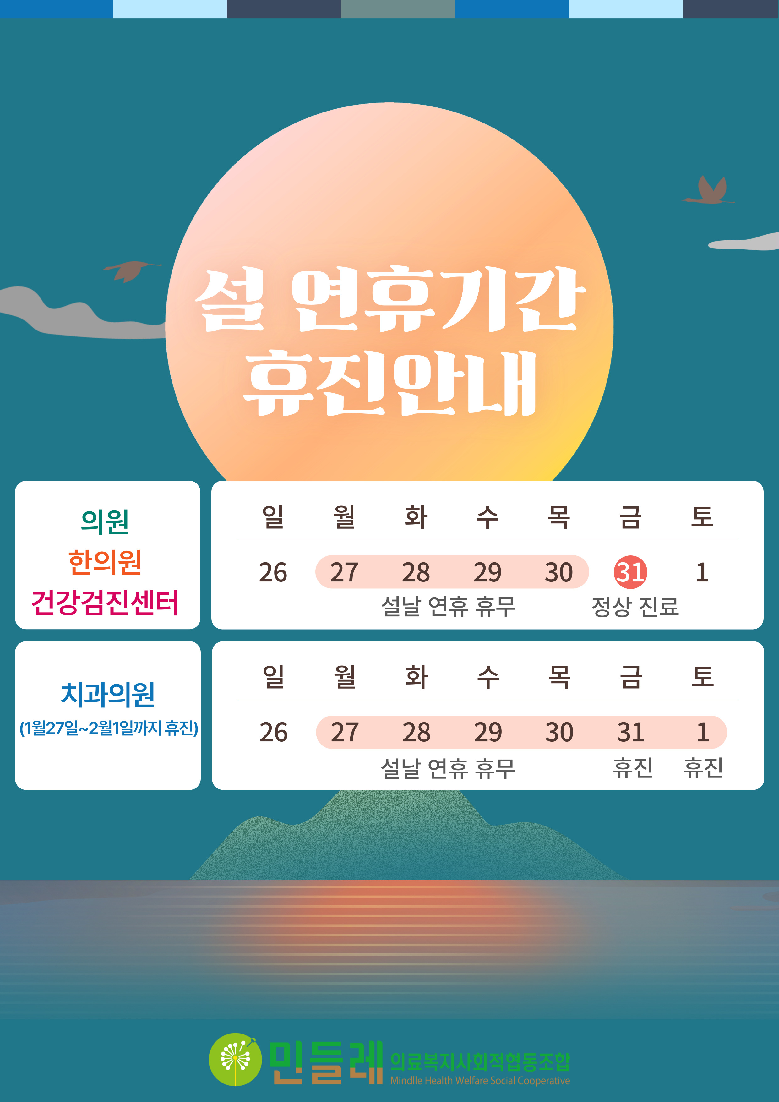 2025년 설 연휴기간 휴진안내